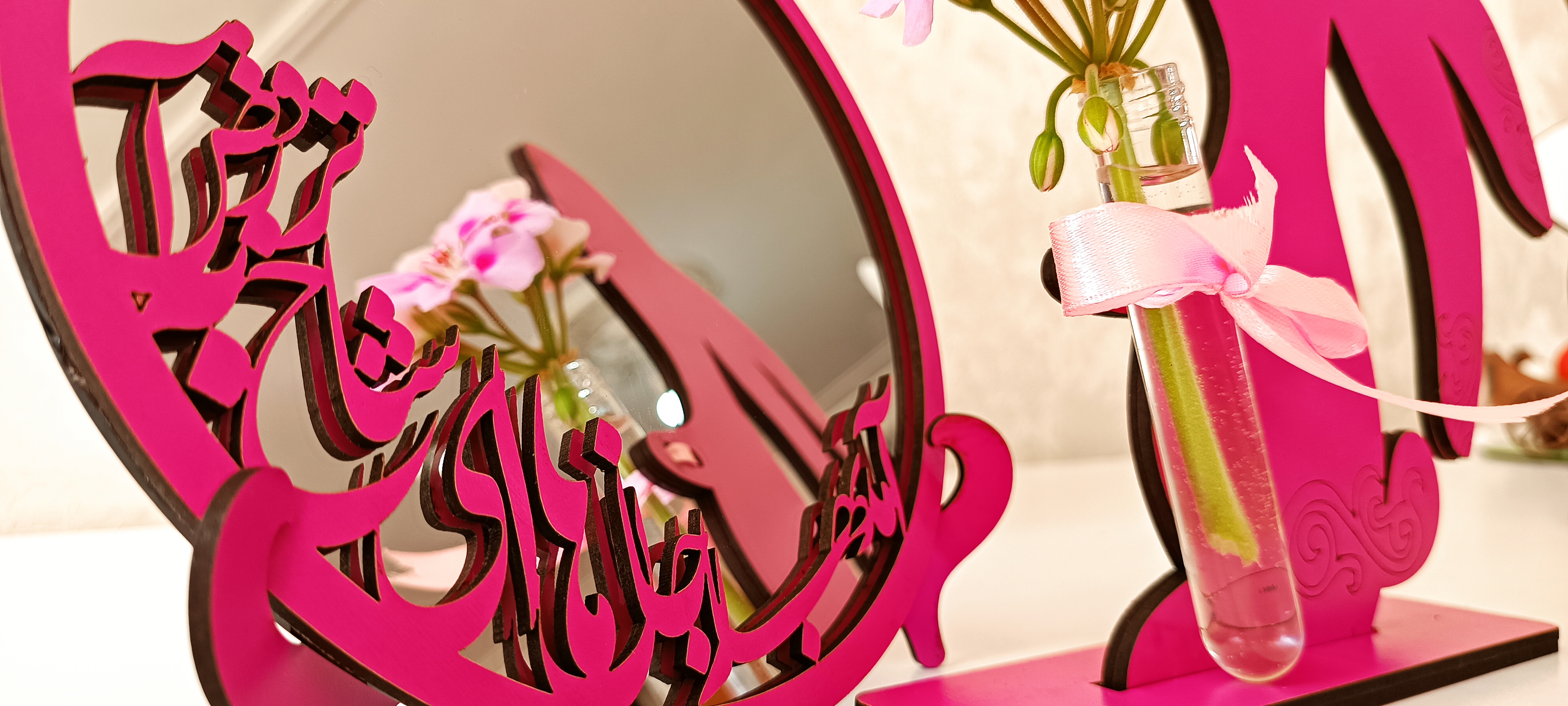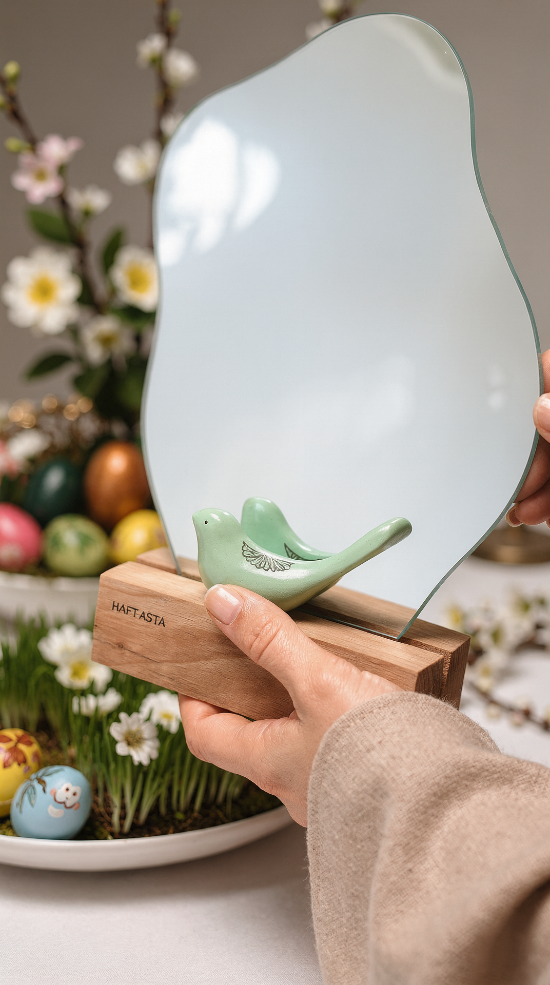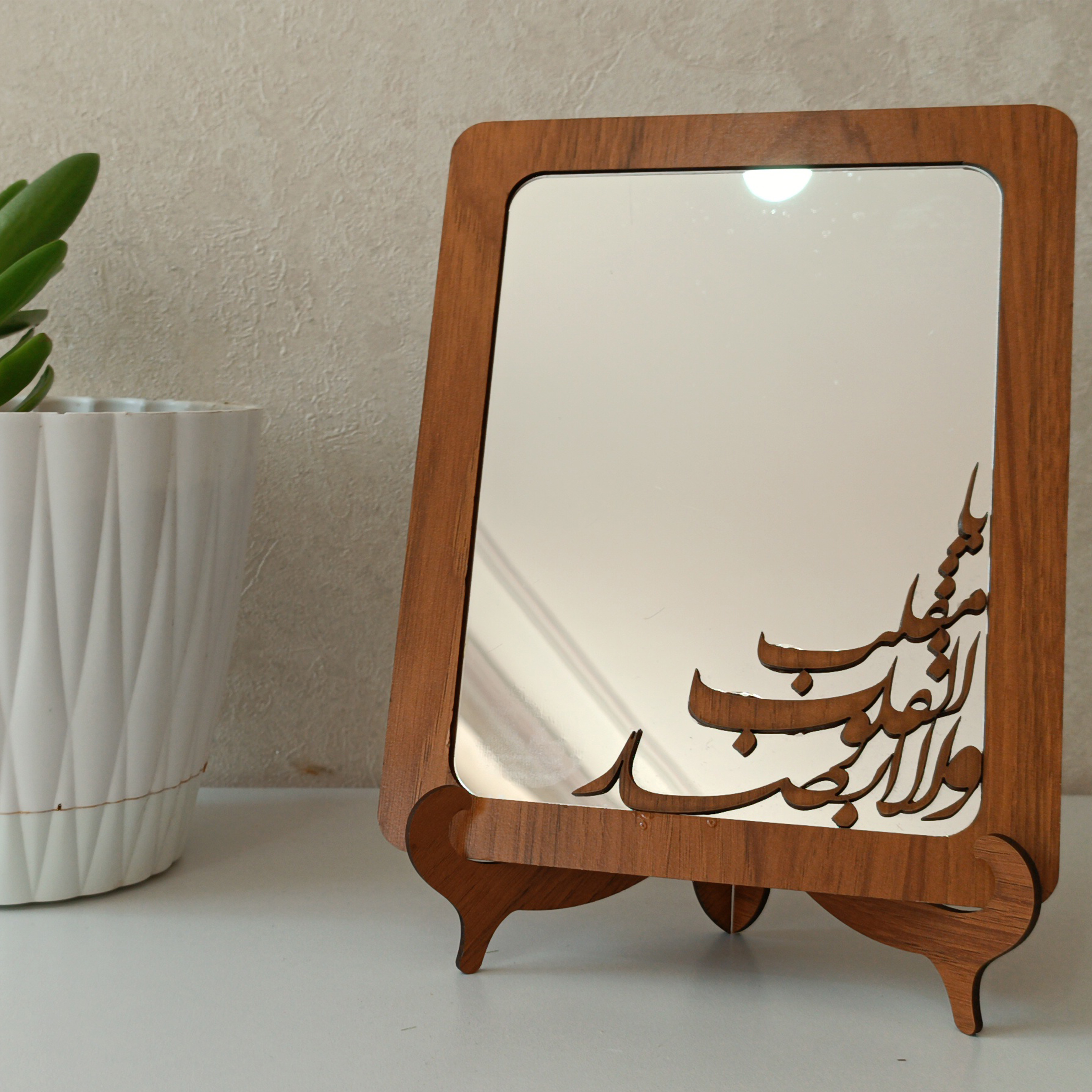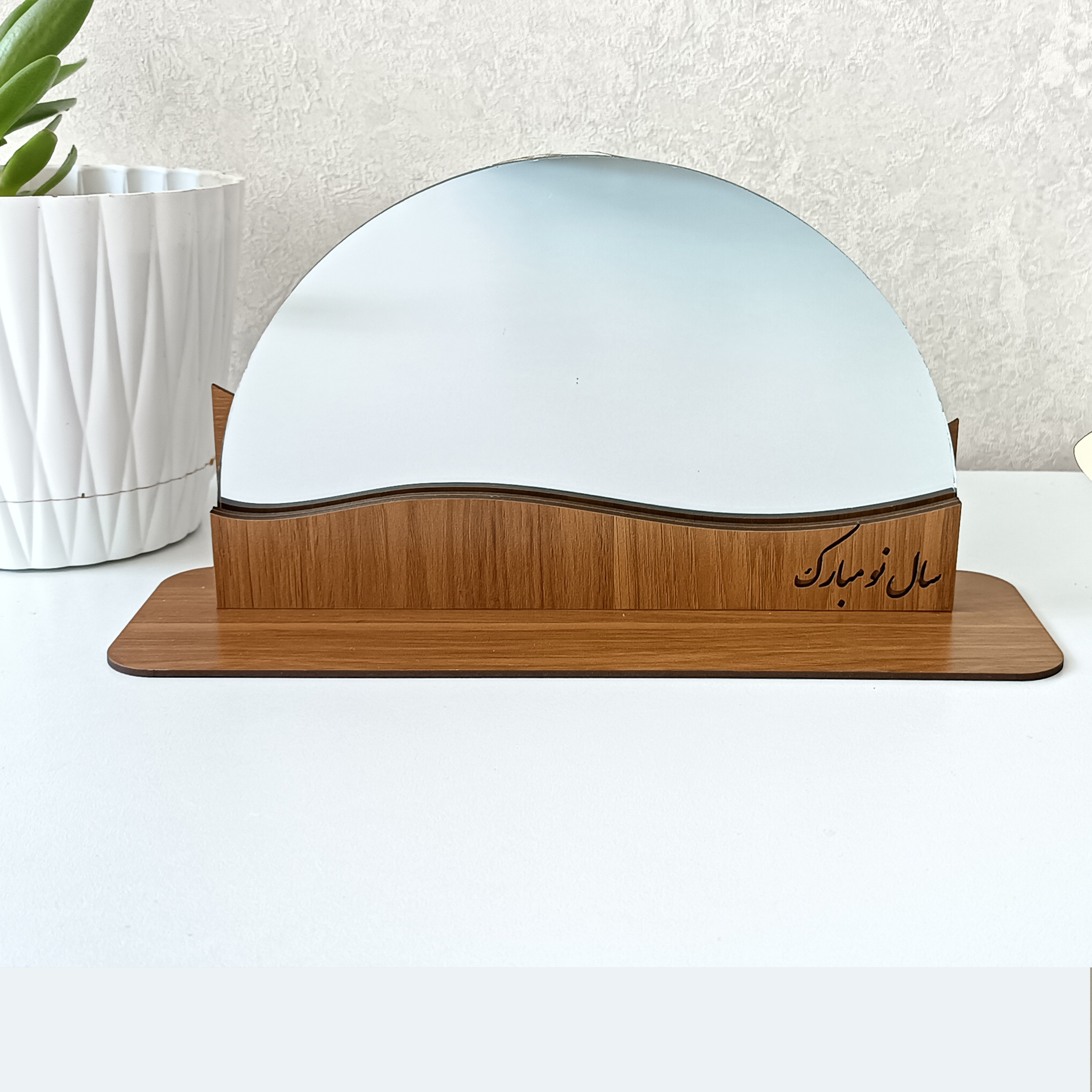 آینه رومیزی دفرمه پایه چوبی هفت سین